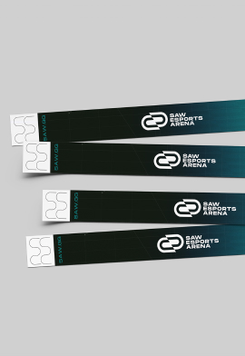 Convites, pulseiras, badges, cartazes e cartões identificadores.